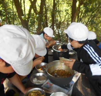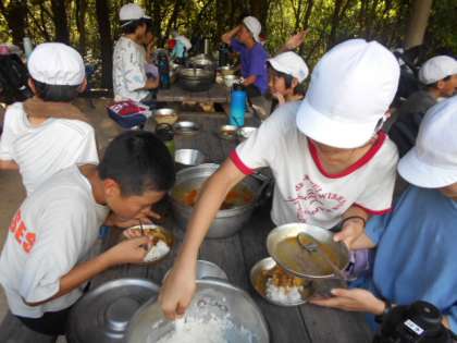 みんなで協力して作ったカレーライスの味は格別だったようです!お代わりをして、たくさん食べる子もいました。