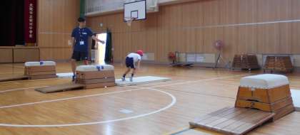 両足でしっかり踏み切るなど、とび箱が跳べるようになるために大切なことを教えてもらい、子どもたちは楽しんで練習に励んでいました。