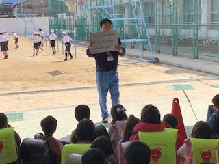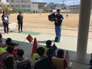 11日(木)の集団下校では、セーフティ淀川の方に来ていていただいて安全に学校生活を過ごすためのお話をしていただきました。知らない人に声をかけられた時や友だちと遊んでいる時など、具体的な場面での注意事項を教えてくれました。