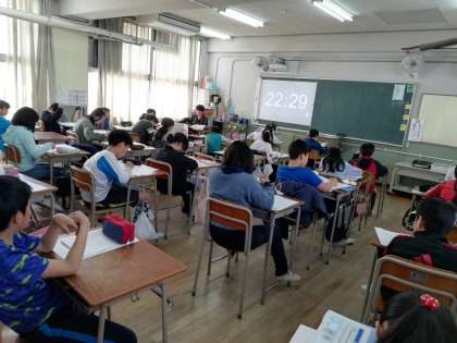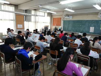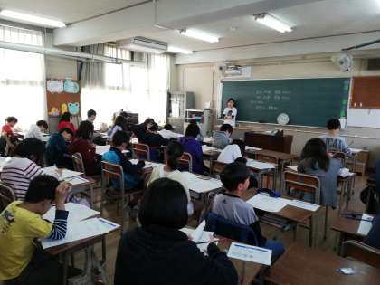 まだまだ眠い1時間目にもかかわらず、児童たちは皆、集中して取り組んでいました。終わった後は「難しかった〜!書けんかった〜!」と、新しい問題に苦戦していたようです。本当にお疲れさまでした。