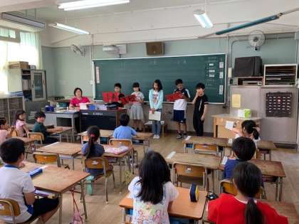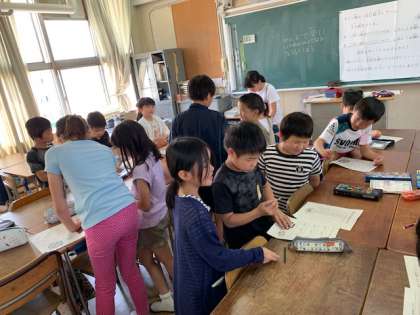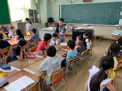 残りの時間は、自己紹介ゲームをしました。2人組で自己紹介をした後、じゃんけんをして勝った方がサインを書いてもらうというゲームです。積極的に話しかけ、サインをたくさん集めている児童もいました。