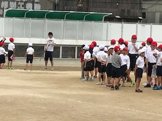 ソフトボール投げのボールを拾ったり、50m走のスターターをしたり大活躍でした。さすが5年生、きびきび動いていました。2年生がめざすお兄さん、お姉さんの姿を見せてくれていました。