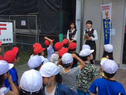 先日雨天中止になった、まち探検に行ってきました。郵便局、消防署、交番、フレッシュしみず、加具波志神社に行きました。各施設で、お仕事に関しての話を聞き、自分たちの地域には、様々な施設があり、様々な人たちに支えられていることが分かりました。