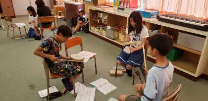練習を繰り返し、お互いのアンサンブルを発表したときは、「演奏の仕方が工夫されていていいね。」「リズムがイメージにぴったり。」など、感想もさまざまでした。