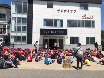 開舎式です。司会の子どもが代表であいさつをした後に、全員でしっかりと3日間お世話になるサンダイフクの方にあいさつをしました。