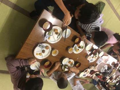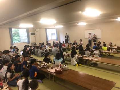 2日目の朝食です。朝が早いせいか、少し眠そうにしている子もいますが、まだまだみんな元気です。
