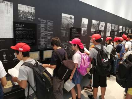 8月30日(金)に社会見学でピース大阪と歴史博物館に行ってきました。ピース大阪では、大阪大空襲などの戦争時の資料を真剣な眼差しで見つめ、課題のワークシートを一生懸命書きこんでいました。歴史博物館では、弥生から現代までの大阪の歴史を資料や展示物で学びました。