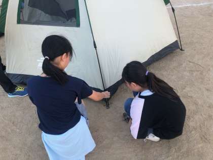 テント設営も力を合わせて取り組みました。