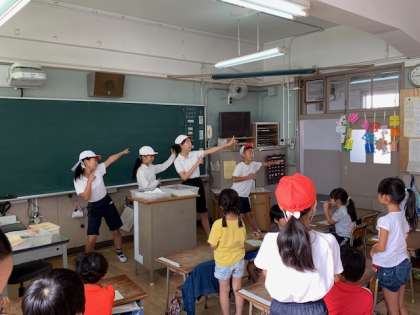 エールのおくり方やかけ声、応援歌などの練習をいっしょにしました。応援団の児童がわかりやすく教えてくれたので、楽しく参加することができていました。