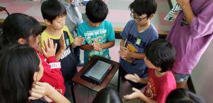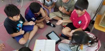 リズムアンサンブル「クラッピングファンタジー第4番」の発表に向けて、タブレットを使って練習をしている様子です。「みんなでリズムを合わせるのが難しかった。」「楽しくできた。」など、子どもからはたくさんの感想を聞くことができました。