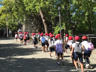 気持ちのよい天気のもと、みんな元気に歩きます。