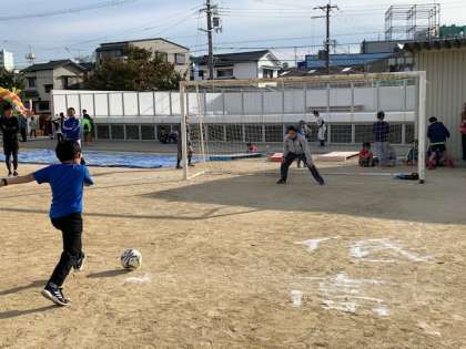 ステージ発表では、加島小学校の先生たちの出し物もありました。ステージ発表後は、児童対先生のPK体験が行われました。先生を相手にゴールを決めて喜ぶ児童の姿も見られました。