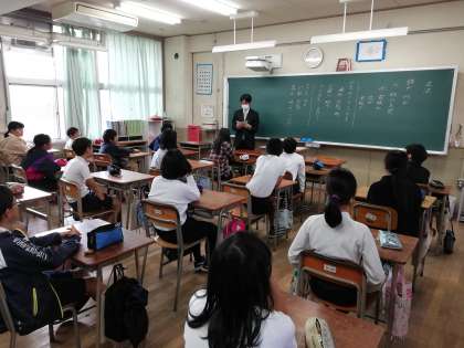 11月19日(火)に小中交流会として、加島小学校と三津屋小学校の6年生児童が美津島中学校に集まり、授業や部活動の体験を行いました。少し緊張していましたが、四か月先に入学する中学校では、どのような活動を行うか少し分かる貴重な体験をすることができました。