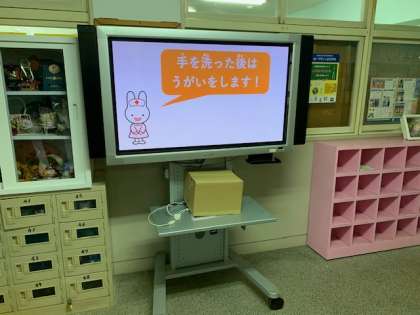 学校での取り組みや子どもたちの様子を写真や映像で流しています。