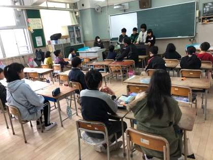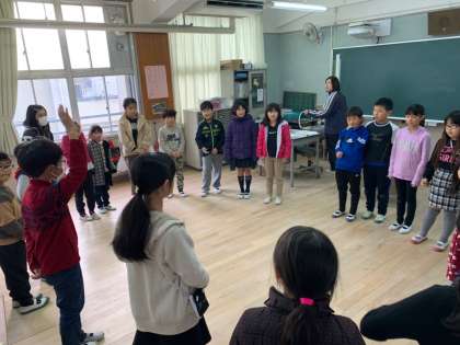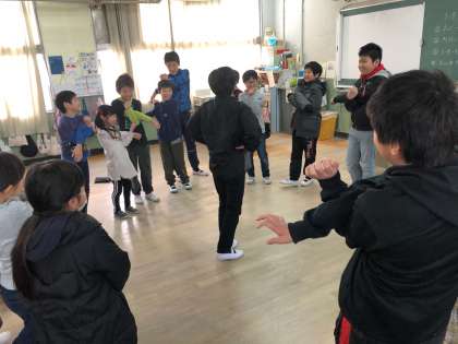 22日(水)の朝、ファミリータイムがありました。今回の司会は4年生です。ゲームの進行に一生懸命に取り組みました。「リーダーはだれだ?」ゲームにみんな楽しそうにチャレンジする姿が見られました。