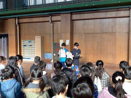 担当の児童から、外から帰ってきたときや給食前など、手洗いうがいの習慣をつけていくようにお話がありました。また、校長先生からもインフルエンザ等の感染症が流行る時期だからこそ、いつも以上に健康に気をつけるように話がありました。具体的には、手洗いうがいだけでなく、食事や睡眠、せきエチケットなども意識して生活するように呼びかけていました。
