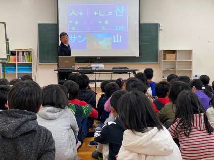 日本語の漢字やひらがなとは、字体が違うけど読み方が似ていて意味も同じハングル文字があること、ハングル文字のしくみや歴史などについてわかりやすく教えていただきました。