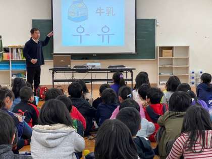 本日は、毎週火曜日に本校でアギコレモイムのソンセンニム(先生)としてお世話になっております、チェ・ドクホソンセンニムに、「ハングル文字について親しもう。」という題材で授業をしていただきました。
