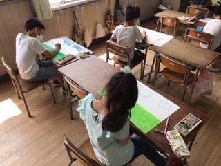 みつばちのいる絵をパスを使って描きました。にっこり笑顔のみつばちがいたり、遠くのみつばちと近くのみつばちがいたり、それぞれに工夫がありました。絵について少し話を聞いてみると、「これからみんなでおうちに帰るところ!」などストーリもあって、想像力を働かせて創作している様子がうかがえました。