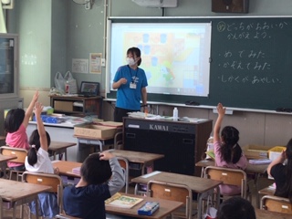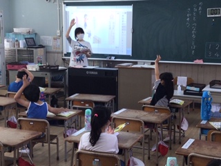 国語の文章を手拍子に乗せて読んだり、自分の考えを手をあげて発表したりしました。