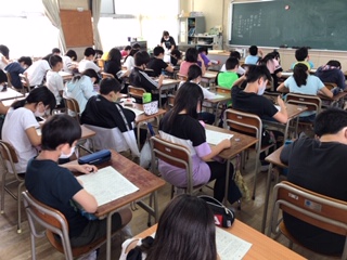 国語のテストをしていました。集中して取り組んでいましたが、テストはどこまで自分がわかっているか、できるかを確かめるものです。終わってから見直すことが大事です。もし間違ったところがあれば改めてできるようにしておいてください。もう一度先生に聞き直すこともいいかもしれません。