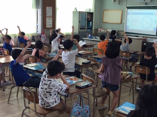 時計を見て、1時間後の時刻は何時何分かを考えました。
