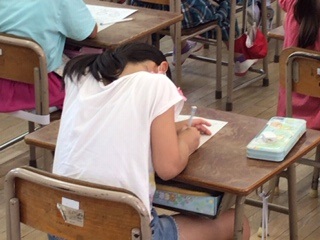 テストに取り組む姿はみんな真剣。どこまでできたかな。