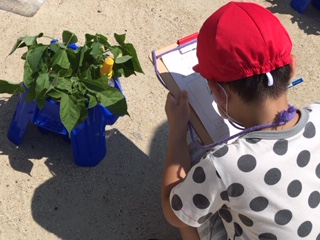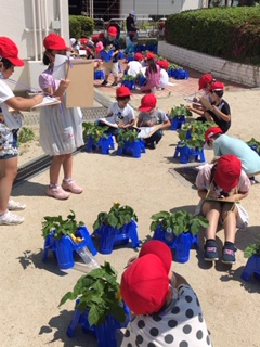 今日はよ〜く観察して記録をしました。「もこもこしてる」「大きくなるのが楽しみ」などと言いながら楽しく活動しましたよ。