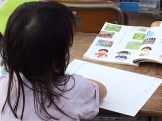 例えば、「こうえんで てんとうむしを みつけた」などです。紹介するときはクイズ形式で何を見つけたかを聞いている人に考えてもらいます。