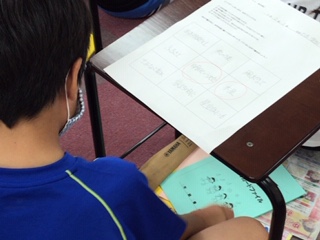 これから学習する曲名を教科書を見ながらカードに書きます。