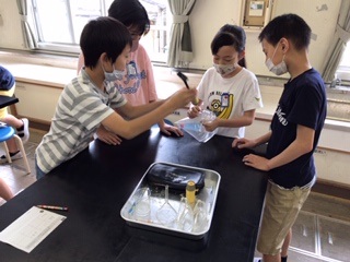 吸う「空気」には何が含まれているか、吐く「息」には何が含まれているか。気体検知管と石灰水を使って実験しました。