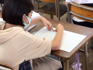 「合同」とは2つの図形がぴったり重なることです。その性質について、図形を重ね合わせたり、辺の長さや角度を測ったりして調べました。