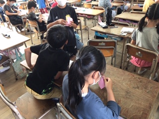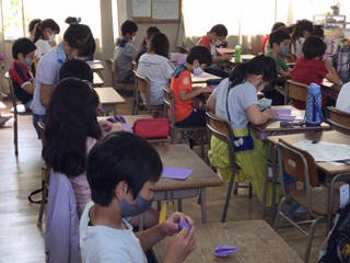 6年生は広島への修学旅行に平和を祈る折り鶴を持って行きます。今日は各学級に6年生が鶴の折り方などを教えに回ってくれました。