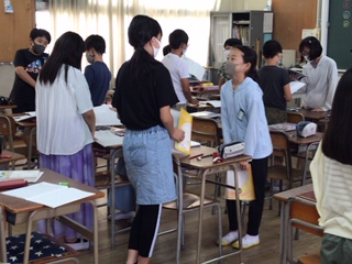 この問題について、まず自分で考え、次に友だちに自分の考えを伝え、最後にみんなで考えるというように学習しました。
