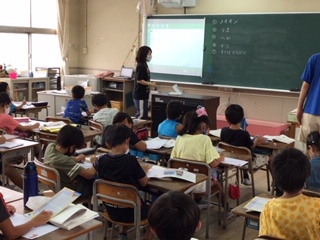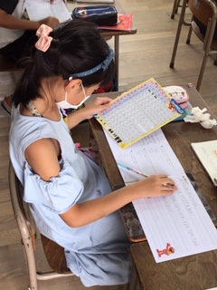 ローマ字表で確かめながら、いろいろな言葉をローマ字で書く練習をしました。