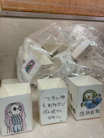 コロナ疫病退散祈願と医療従事者の方への感謝の意を込めた灯篭を作りました。