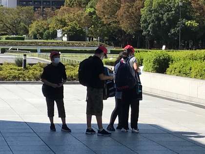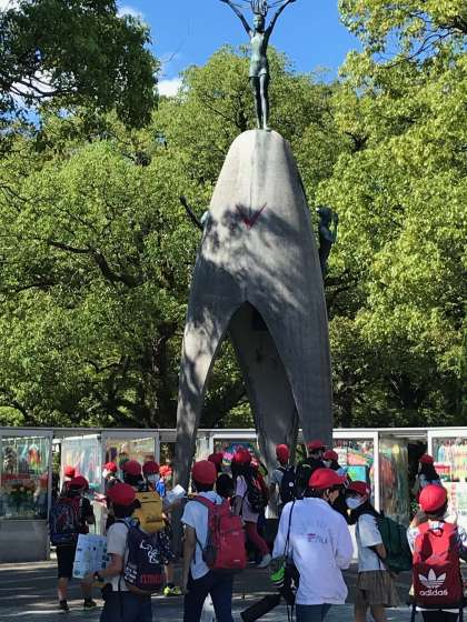 平和記念公園内をグループで様々な碑を回ります。