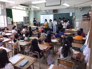 9月の修学旅行で学んだことをまとめてきました。そのことを全学年の各教室に報告しに回りました。広島で見てきたこと、調べたこと、感じたことを伝えました。