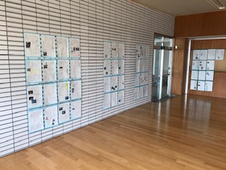 新多目的室には、6年生が書いた新聞と、平和記念資料館で見た資料などを掲示しています。
