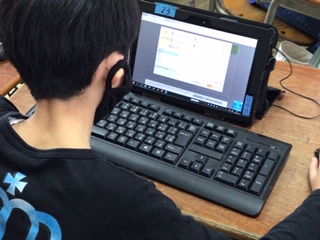 文字を打ち込んだり、写真などの資料を取り入れたり、友だちと教え合いながら進めています。