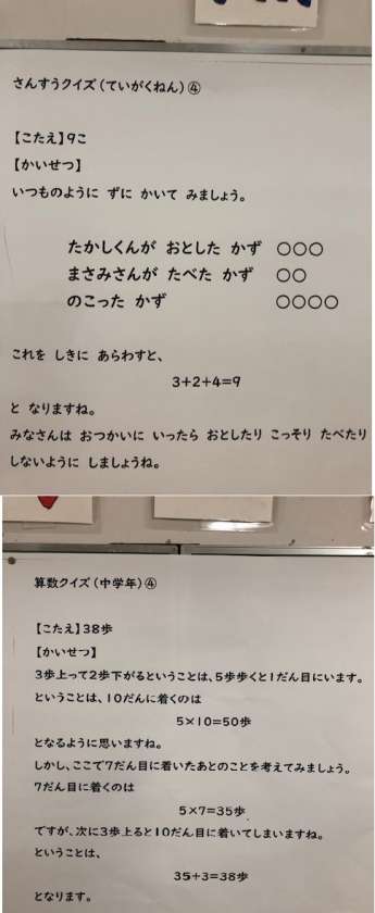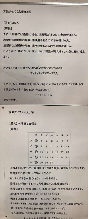 算数クイズ第4弾の答えと正解者の発表がありました。