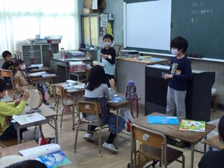 曲に合わせて、タンバリンとカスタネットでリズム打ちをします。
