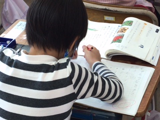 黒板に書かれた言葉や文章をていねいにノートに書くことができています。