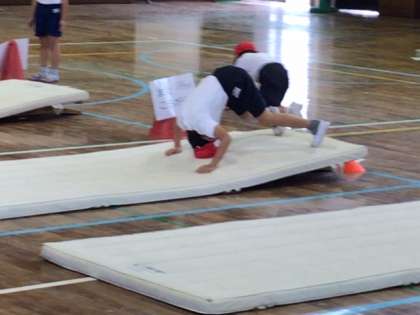 様々なマット運動に取り組みました。