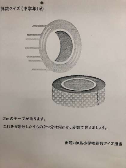 算数クイズ第6弾の問題が貼り出されました。まずは、低学年問題と中学年問題です。