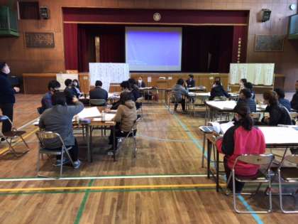 大学の先生にも指導助言に入っていただき、国語科の授業研究会をおこないました。5年生の授業参観のあと、研究協議会をもち、子どもたちの読む力を育成する授業の在り方について協議しました。