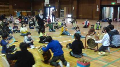 日本古来の楽器から韓国・朝鮮の楽器を紹介していただき、実際に韓国・朝鮮の楽器の音を聞き、代表者は演奏もさせてもらいました。