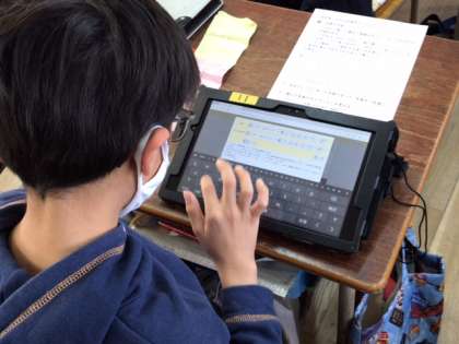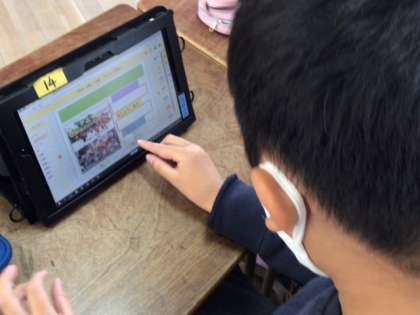 調べたことはタブレットを使ってまとめていきます。