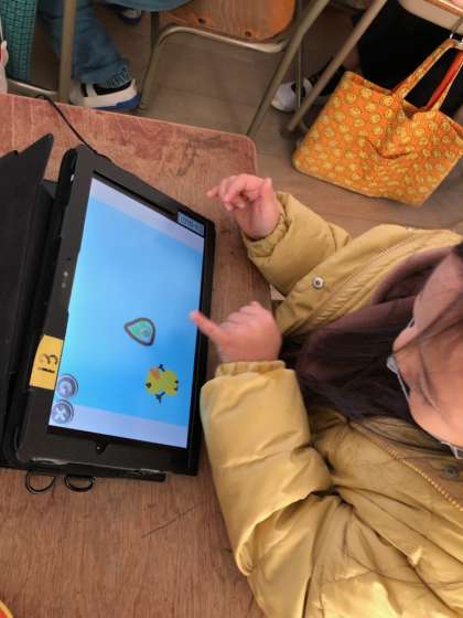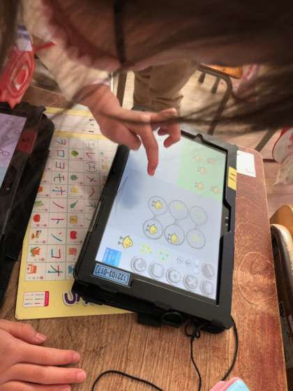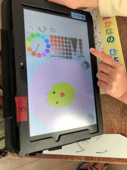 最初は、なかなか操作が難しく戸惑っている子もいましたが、自分がかいた絵が動いているのをみるととてもうれしそうにしていました。