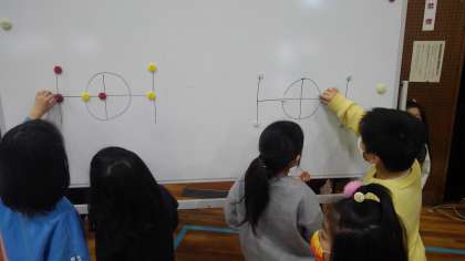 アジアの遊びに親しむということで、韓国・朝鮮の遊びを紹介してもらい、その後クラスごとに分かれて実際に遊びを体験しました。